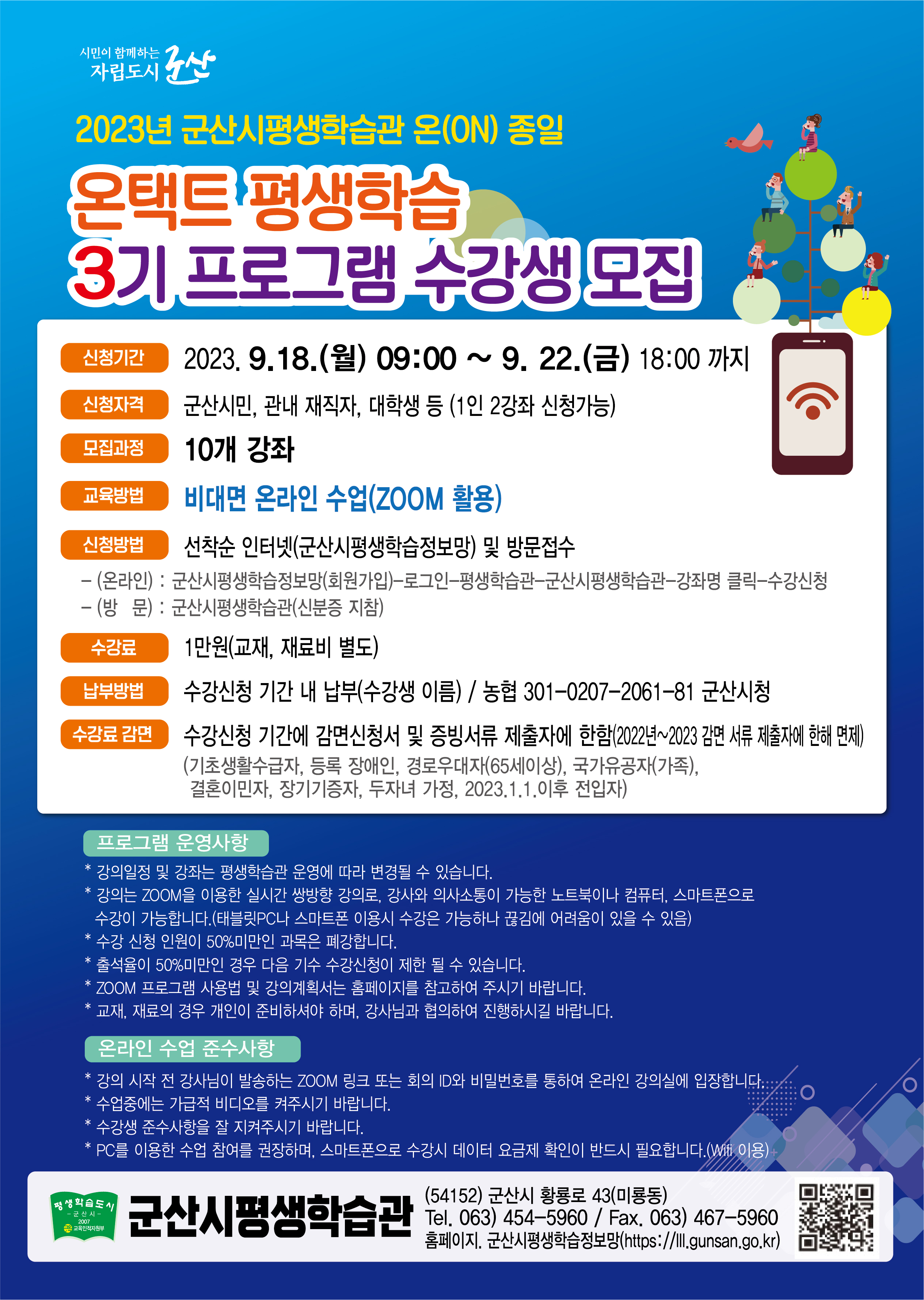 ○ 신청자격 : 군산시민, 관내 재직자, 대학생 등 (1인 2강좌 신청가능)