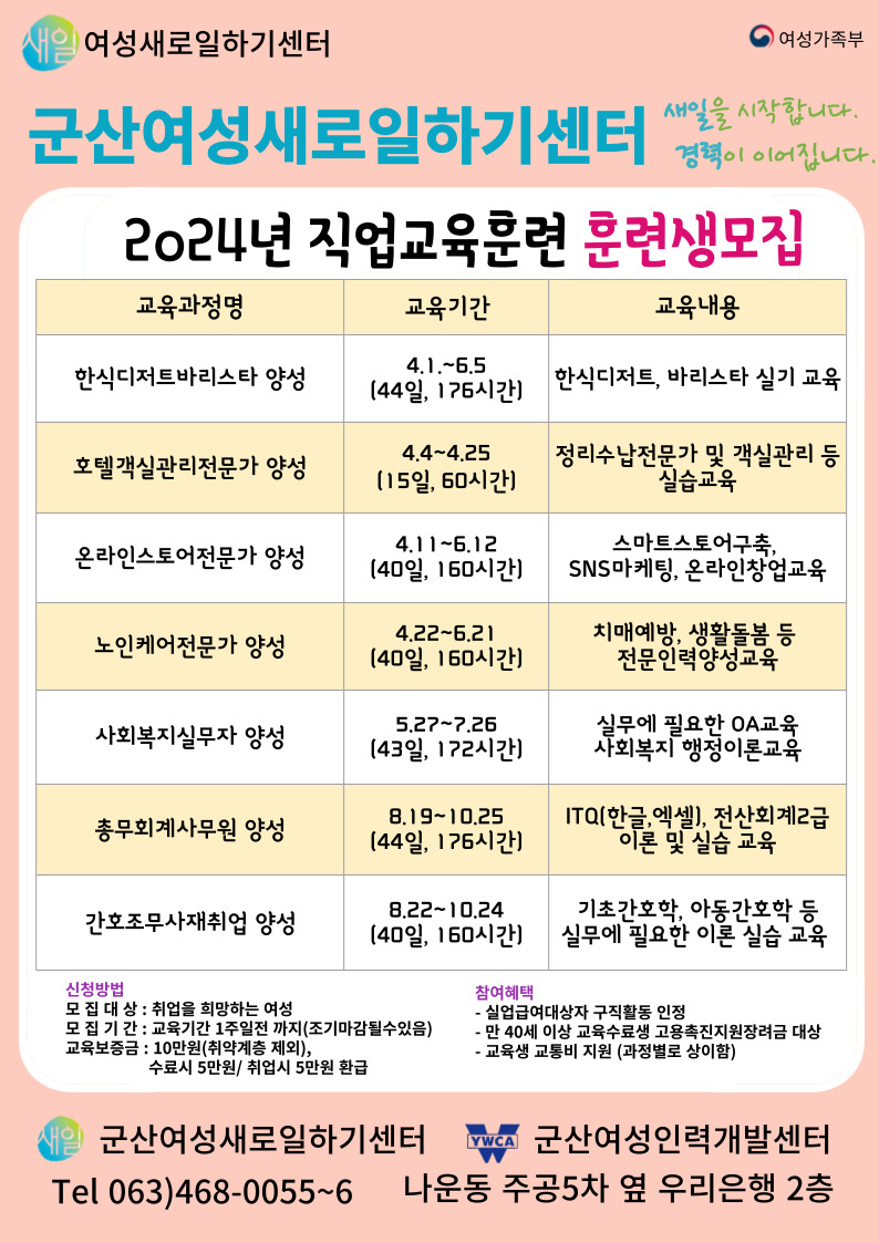 □교육문의 : 군산여성인력개발센터