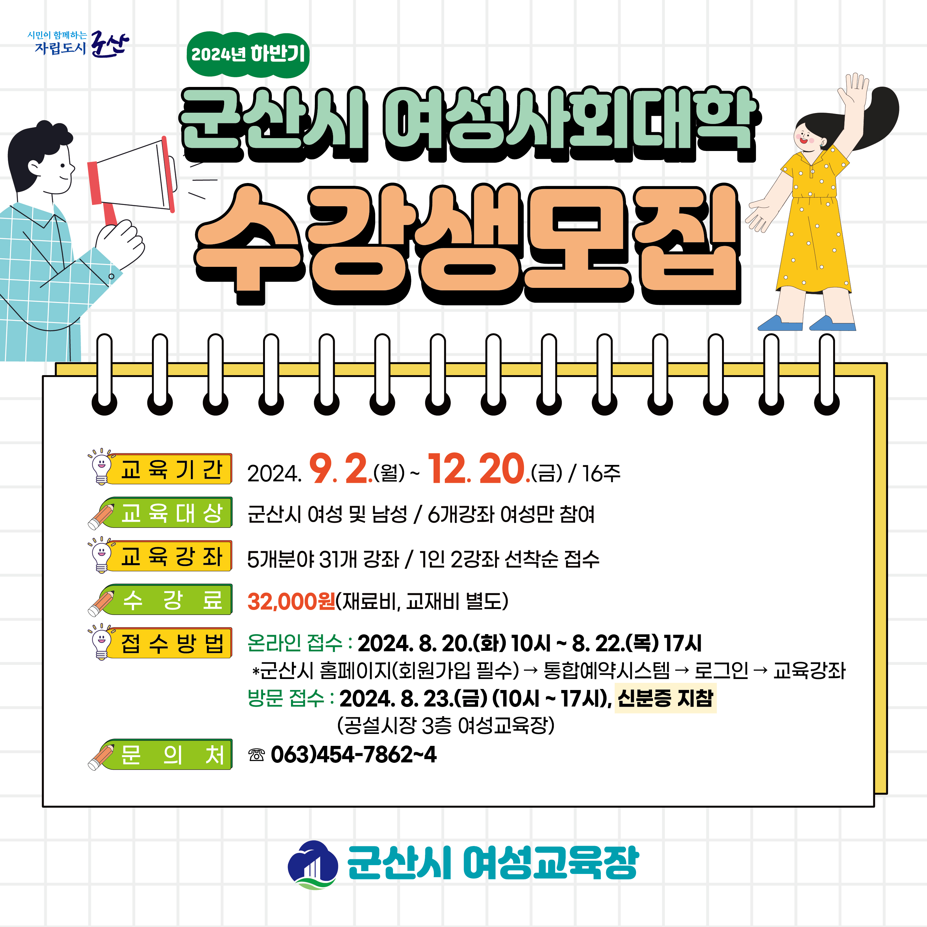 2024년 하반기 여성사회대학 프로그램 수강생을 모집합니다.