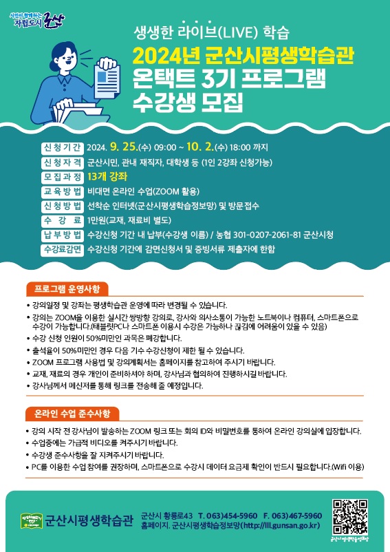 2024년 군산시평생학습관 온택트 3기 프로그램 수강생 모집