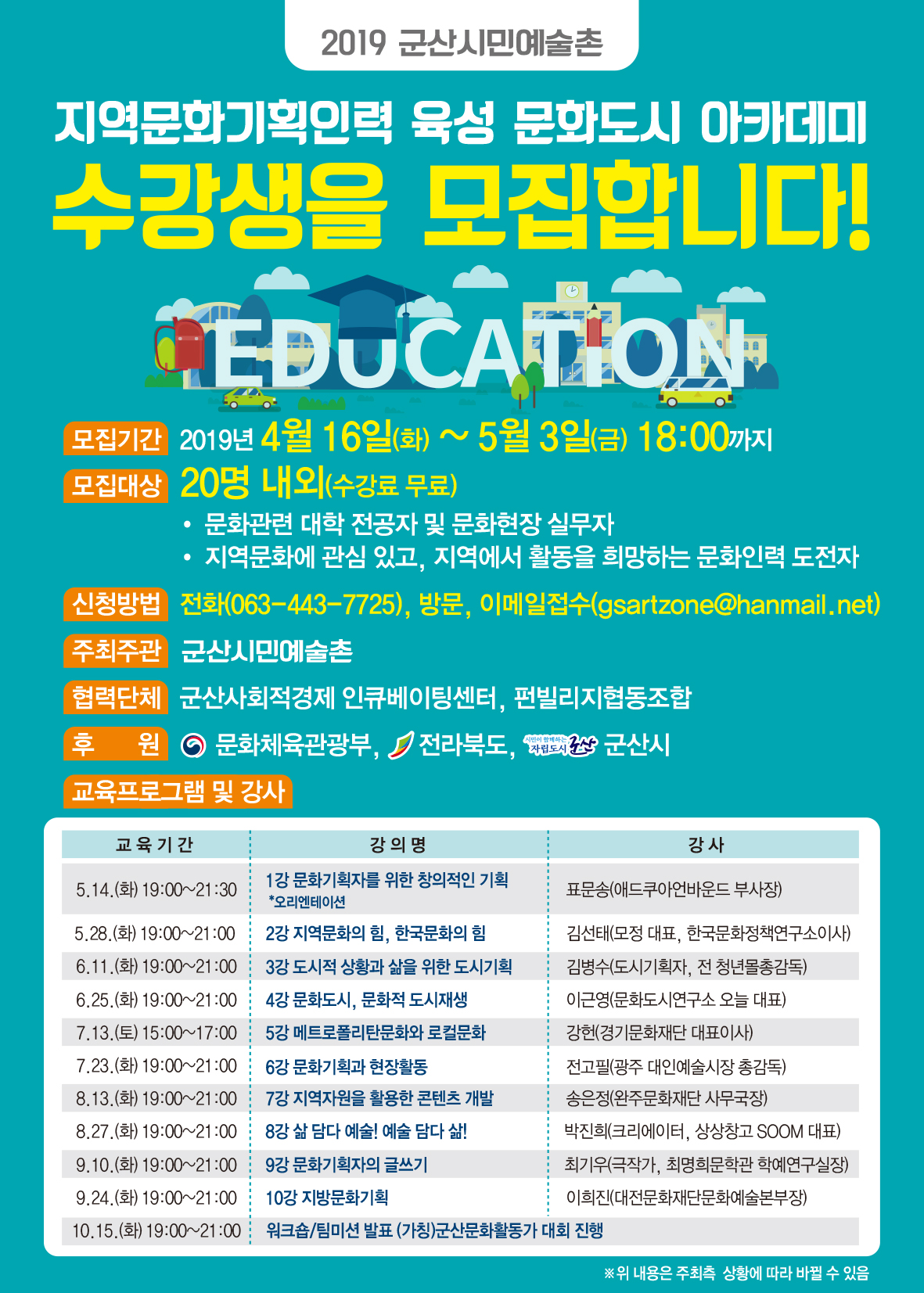 군산시민예술촌에서 2019 지역문화기획인력 육성을 위한 '문화도시 아카데미' 수강생을