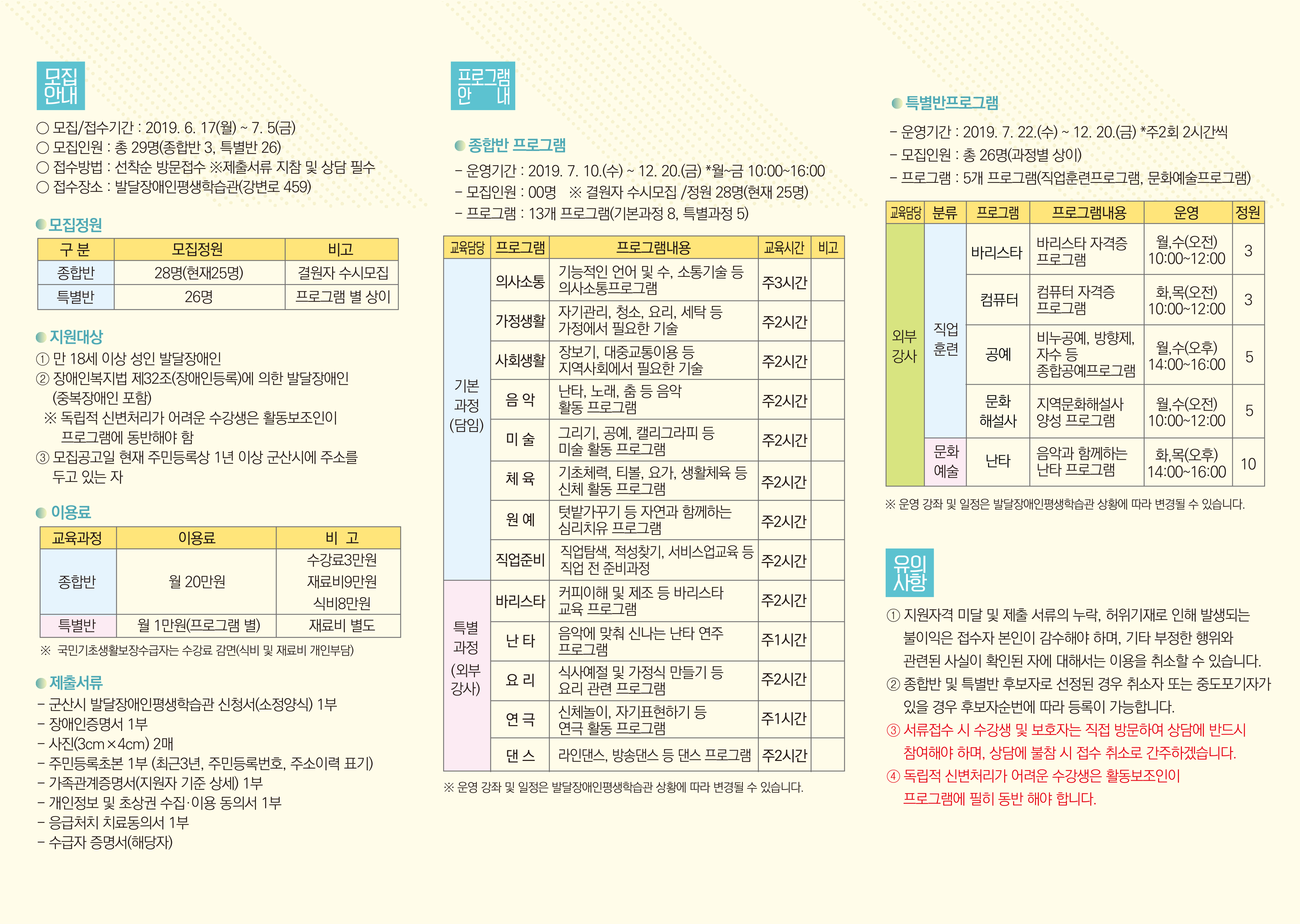 ✿ 2019년 발달장애인평생학습관 수강생 모집