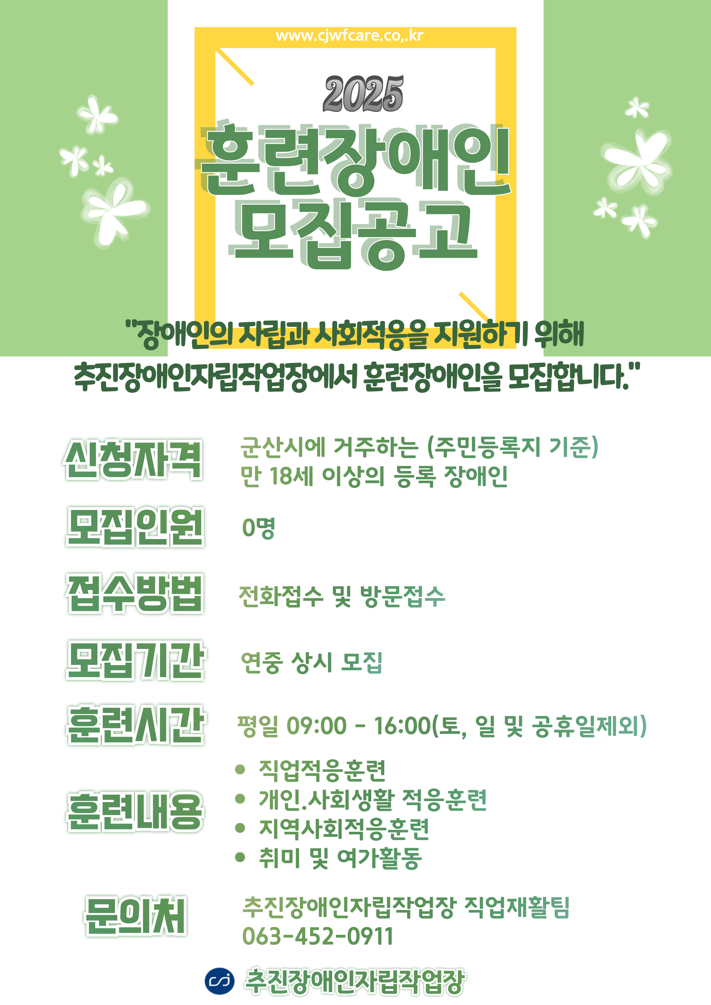 ※ 문의 : 063)452-0911 추진장애인자립작업장 직업재활팀
