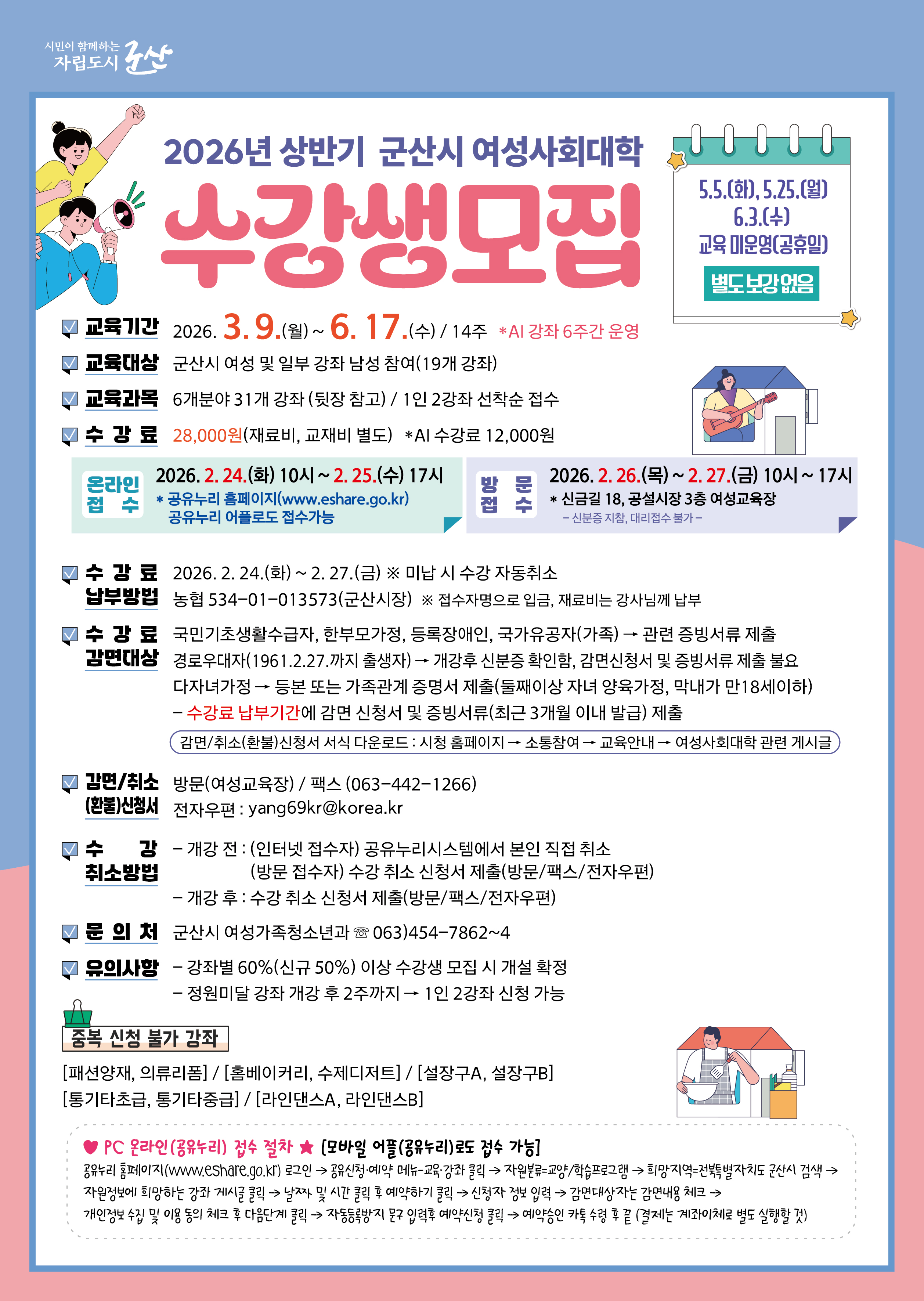2026년 상반기 여성사회대학 프로그램 수강생을 모집합니다.