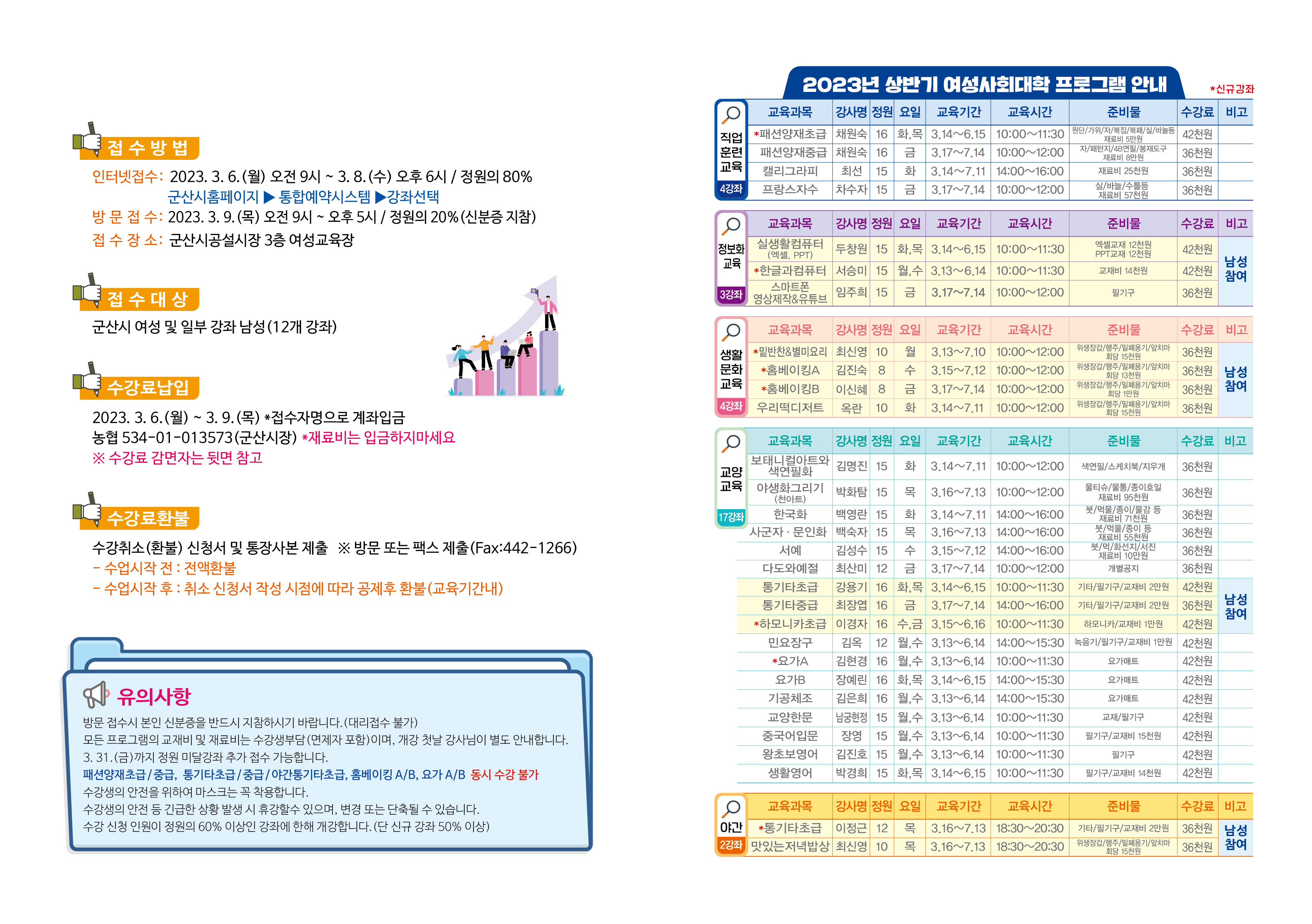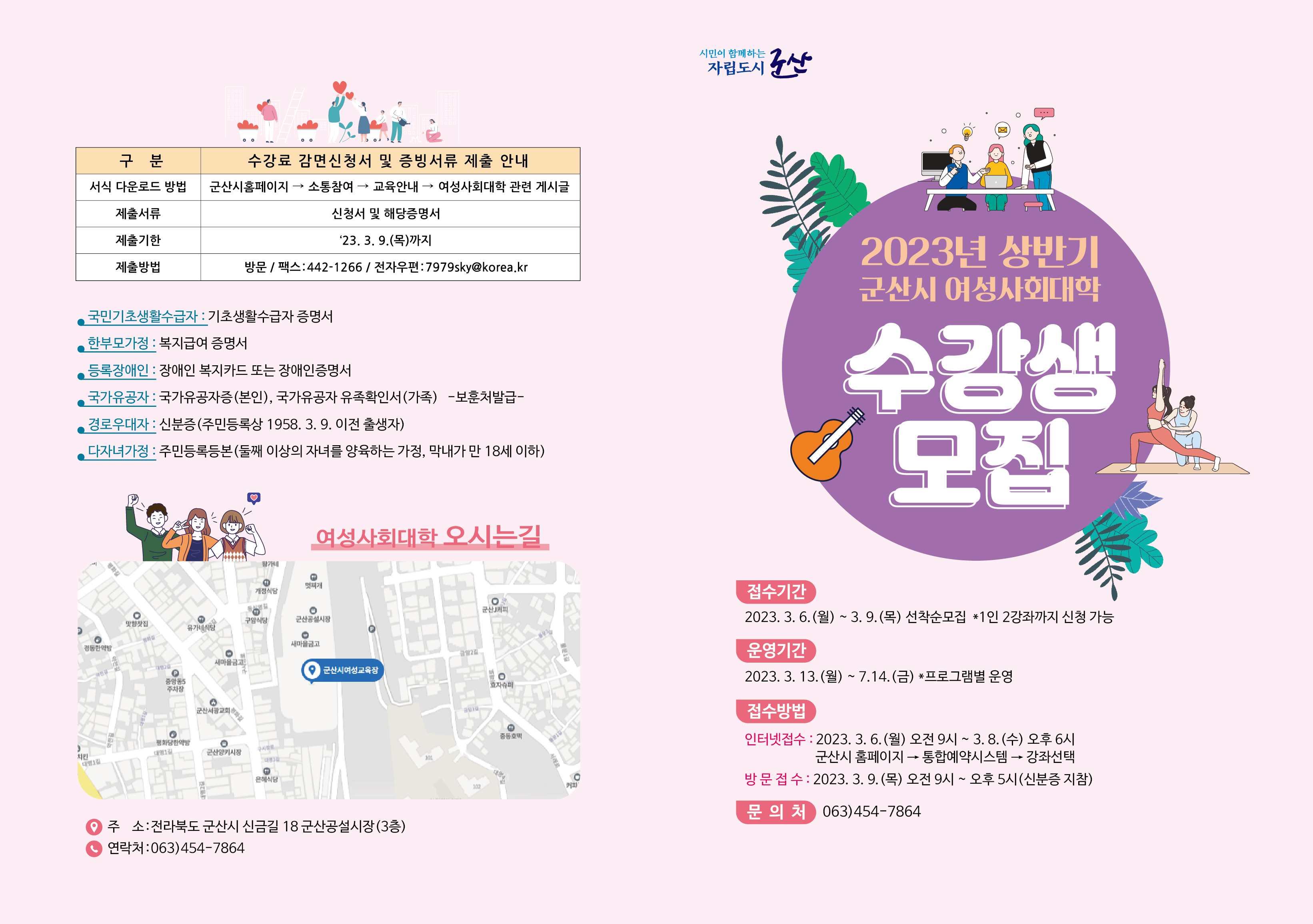 2. 모집대상 : 군산시 일반여성 및 일부강좌 남성