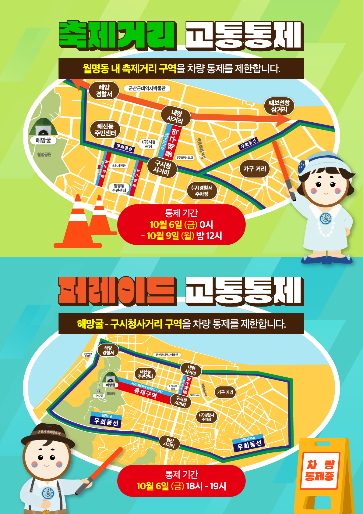 통제일시 | 2023. 10. 6.(금) 0시 ~ 10. 9.(월) 밤12시 | 2023. 10. 6.(금) 18:00 ~ 19:00 |