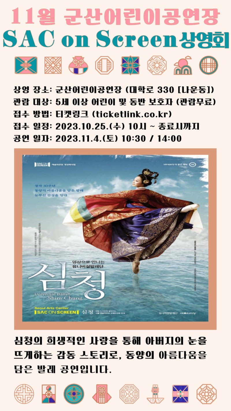- 심청(장르 : 발레) : 10. 25(수) ~ 11. 3(금) [10일]