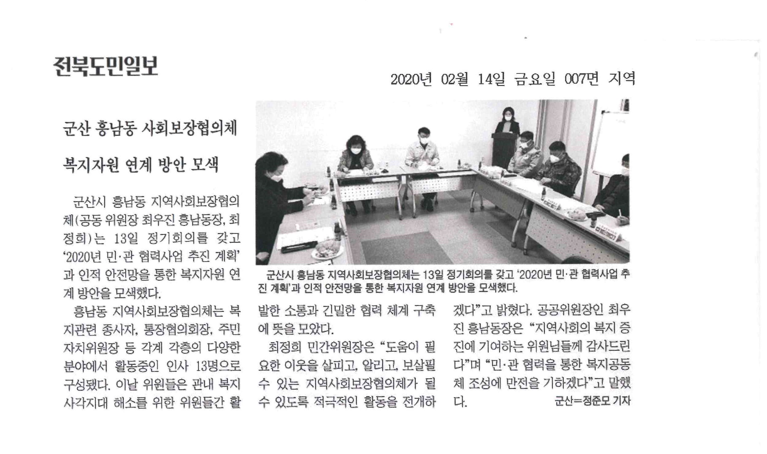 군산시 흥남동은 13일 흥남동 지역사회보장협의체(공동위원장 최우진, 최정희) 정기회의를 갖고 관내 복지사각지대 해소 방안을 모색했다.