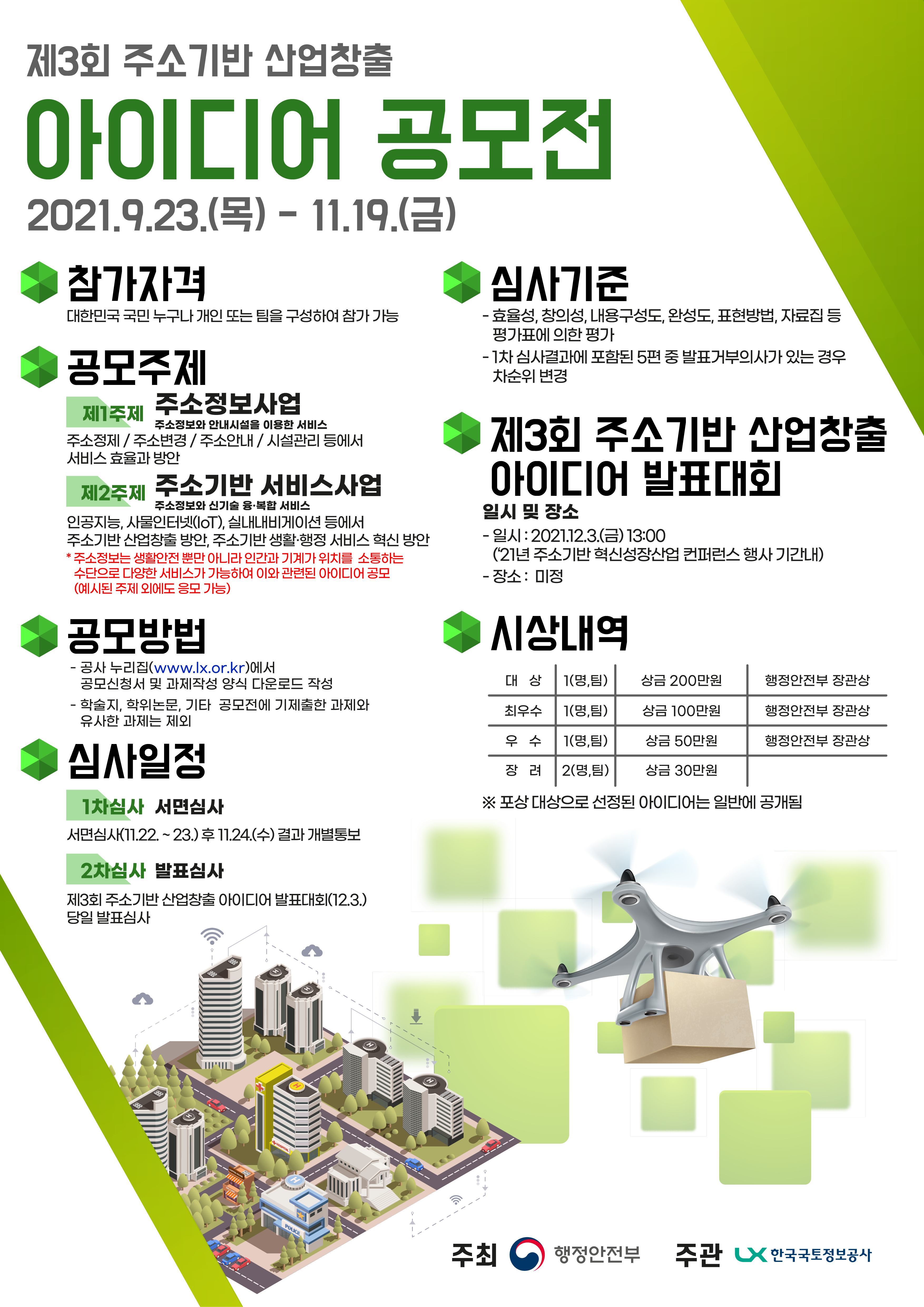 | 368 | (행정안전부 제2021-2867호) '21년 주소기반 산업창출 아이디어 공모전 공고 |