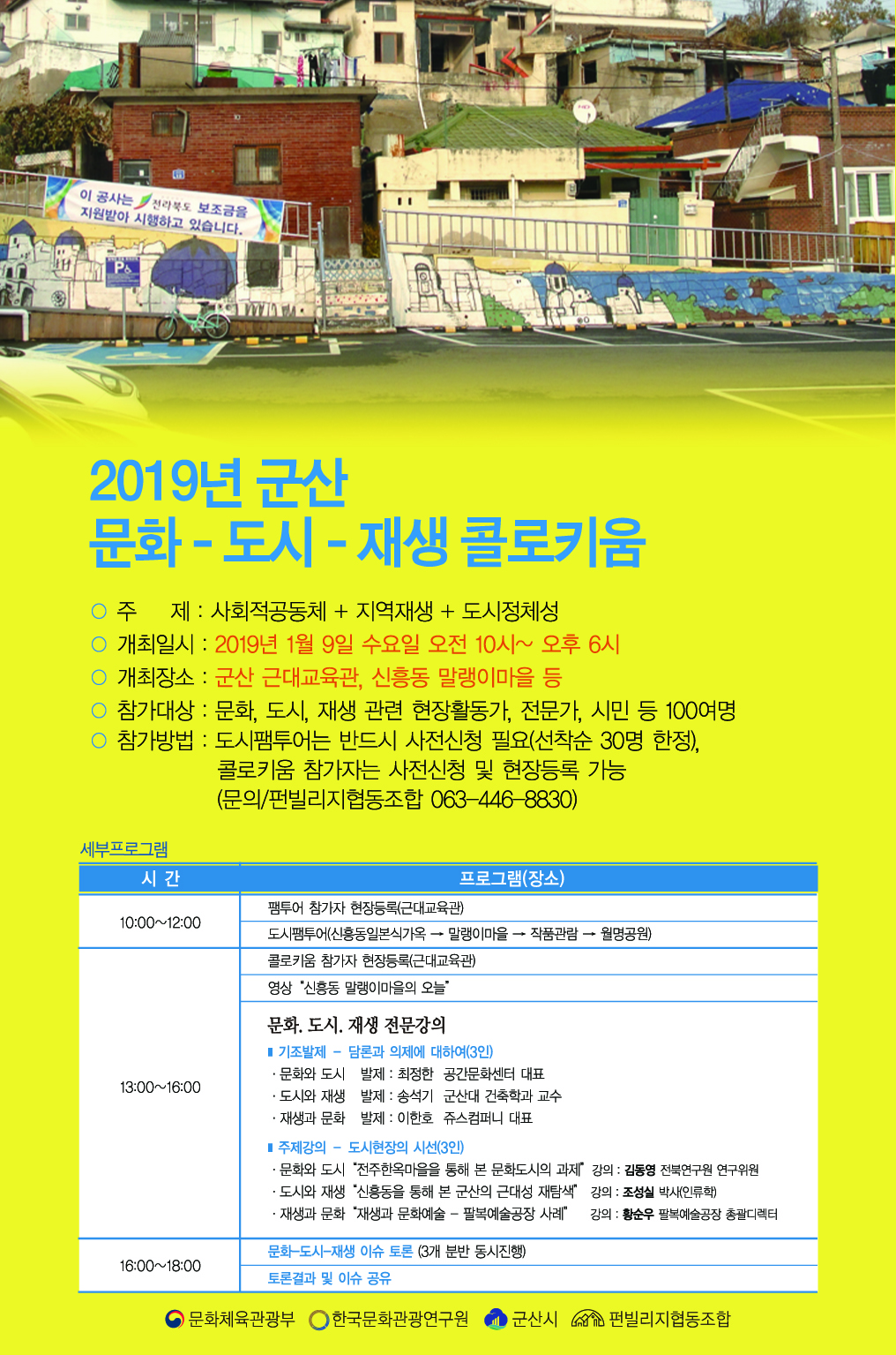 2019년 군산 문화, 도시, 재생 콜로키움을 개최하고자 하오니 많은 참석 바랍니다.