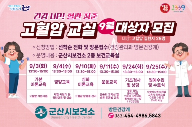 695 2024년 9월 건강 UP! 혈관 청춘 고혈압·당뇨 교실 대상자 모집 다운받기 보건소 24.08.22 4800