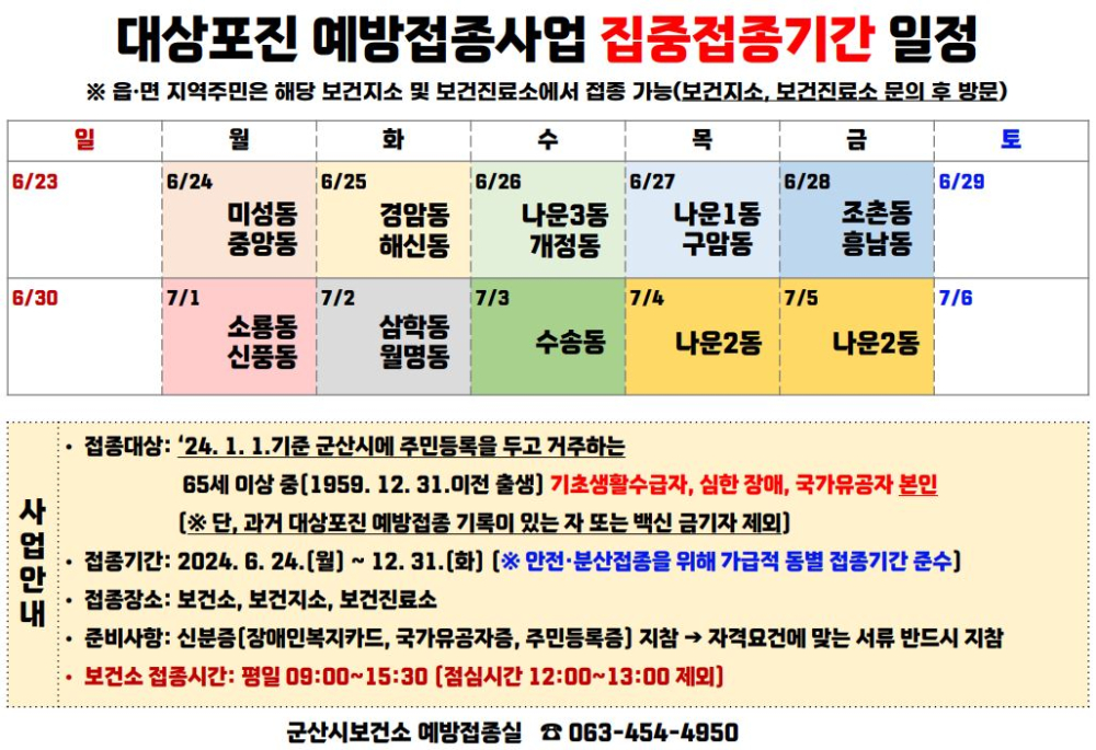 664 2024년 군산시 취약계층 대상포진 예방접종사업 실시 다운받기 감염병관리과 24.06.18 5085
