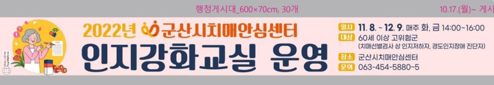 436 2022년 치매안심센터 인지강화교실 대상자 모집 다운받기 건강관리과 22.10.18 4535