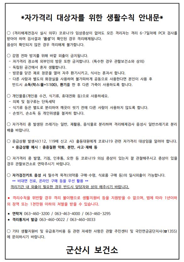 334 자가격리자 생활수칙 안내문 다운받기 보건행정과 22.02.12 6757