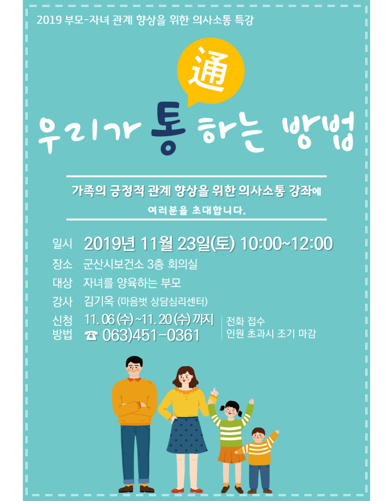 96 2019 부모-자녀관계 향상을 위한 의사소통 특강 [우리가 통하는 방법] 안내 다운받기 건강관리과 19.11.05 4968