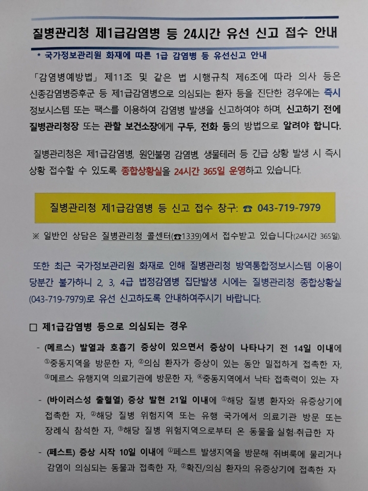 2. 제1급 감염병 등 24시간 유선 시고 접수 안내 1부.