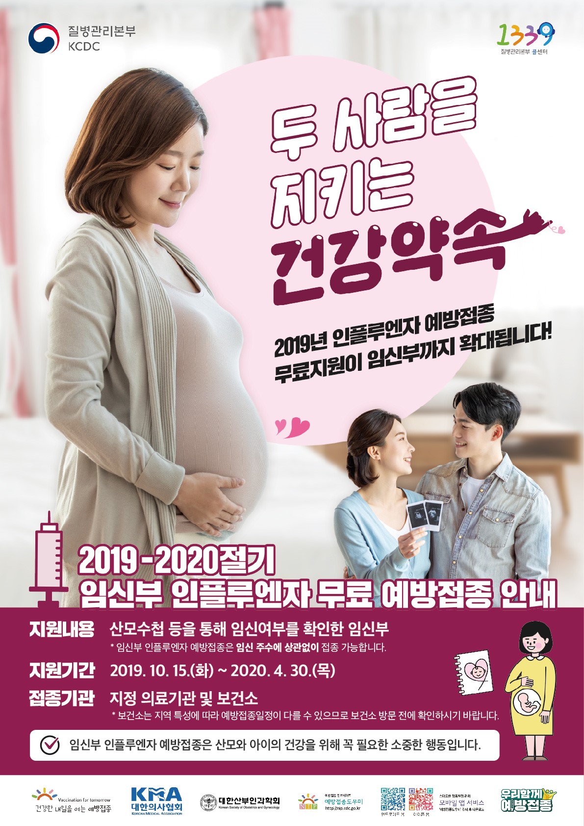 2019-20절기 임신부 무료 독감(인플루엔자) 예방접종 안내