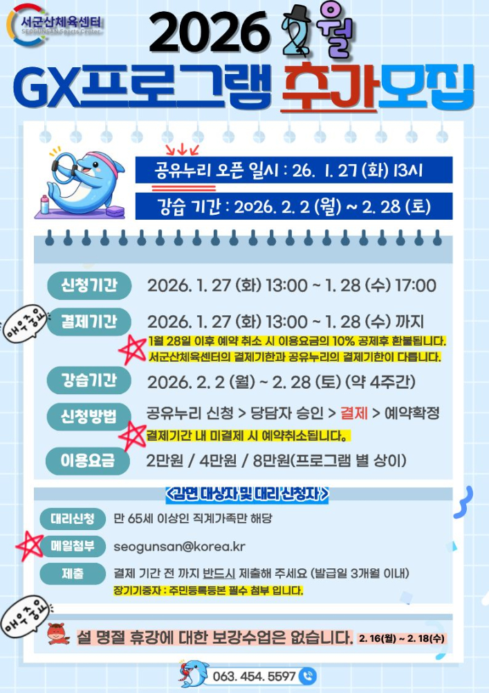 | 245 | 서군산체육센터 2월 GX프로그램 모집 안내 |