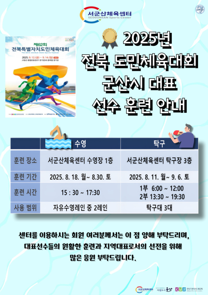| 211 | 서군산체육센터 전북도민체전 군산시 대표선수 훈련안내 |