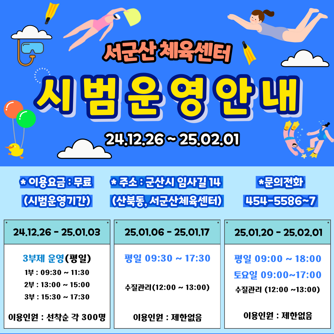 서군산체육센터 시범운영 안내입니다.