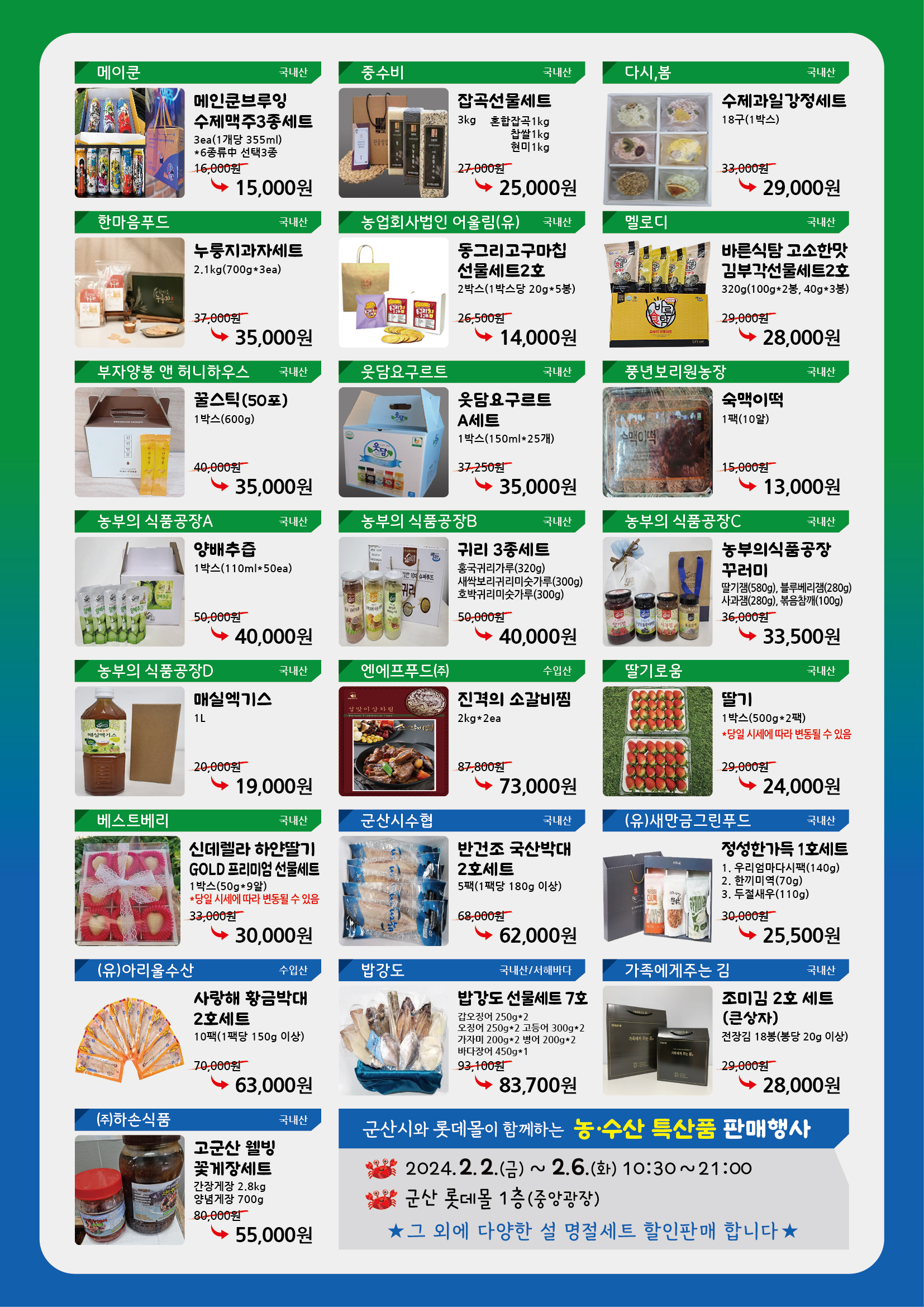 4. 행사내용 : 설명절 군산시 농·수산식품 선물세트 할인판매 및 홍보