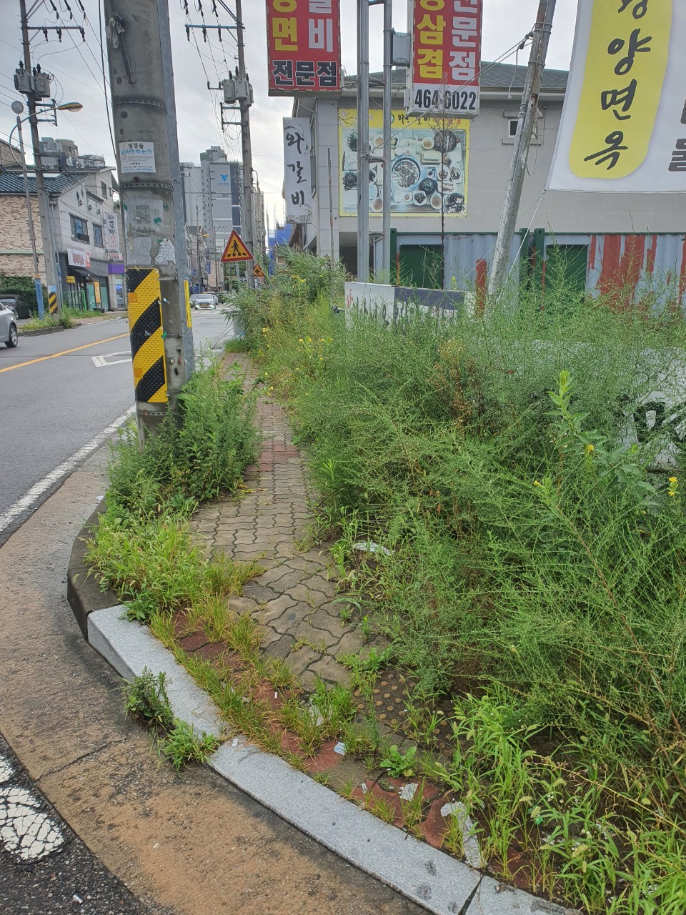잡초가 웃라라 출근길 사람이 다닐 수 있는 길을 막아서니 불편해서 사람이 사람답게 살 수 있겠습니까?