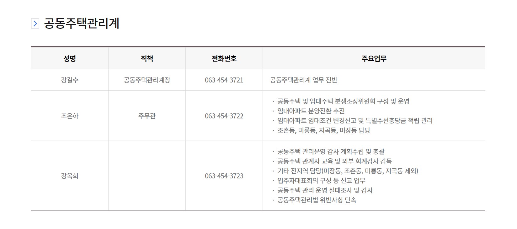 군산시청 주택행정관리계는 군산지역의 공동주택을 관리하는 담당부서입니다.