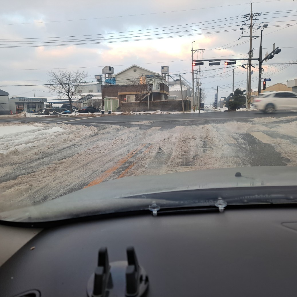 12월 22일 퇴근길 미끄러저 옆으로 빠지고, 오늘 아침 출근길 미끄러서 혼났습니다.