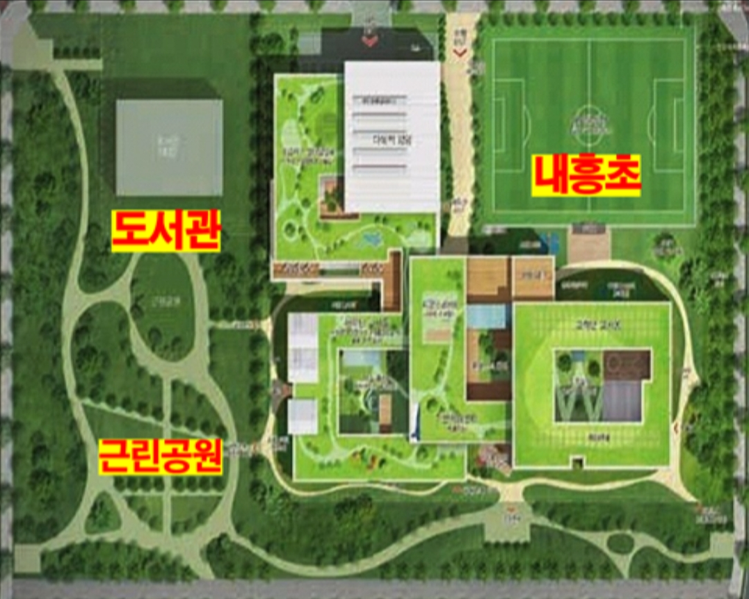 - 내흥초 옆 도서관 부지 매입비가 소요되지 않음!!