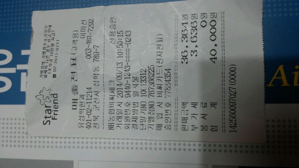 2014년9월13일 삼학동 떡집에서 4만원 밥을 주문하며 교육시 밥을 먹으려고