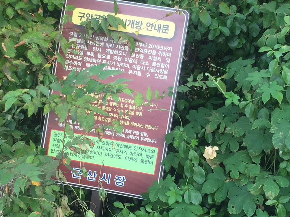 사진 첨부하오니, 참고 바랍니다. 안내문 푯말 아래 '군산시장' 이라고 써두셨으면, 책임지고 관리 해주셨으면 합니다.