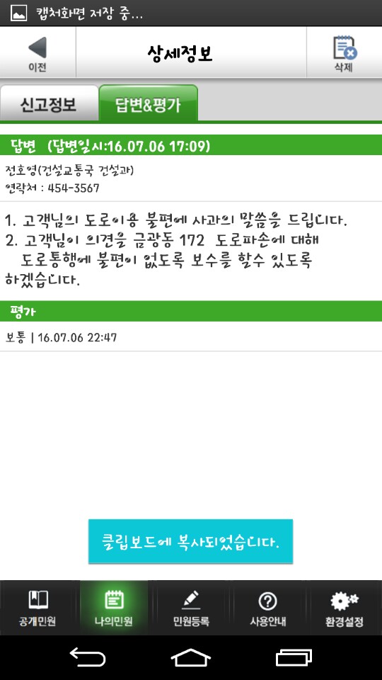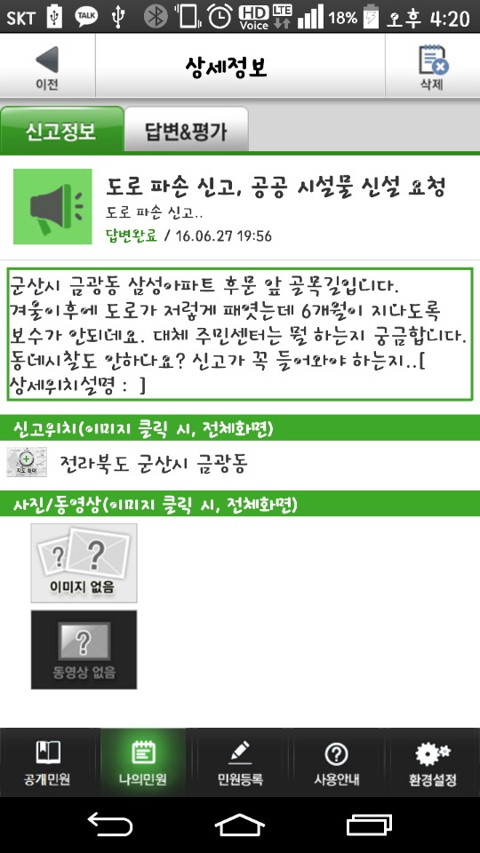 첨부파일에 그때 신고한 내용이랑, 답변 올렸습니다.