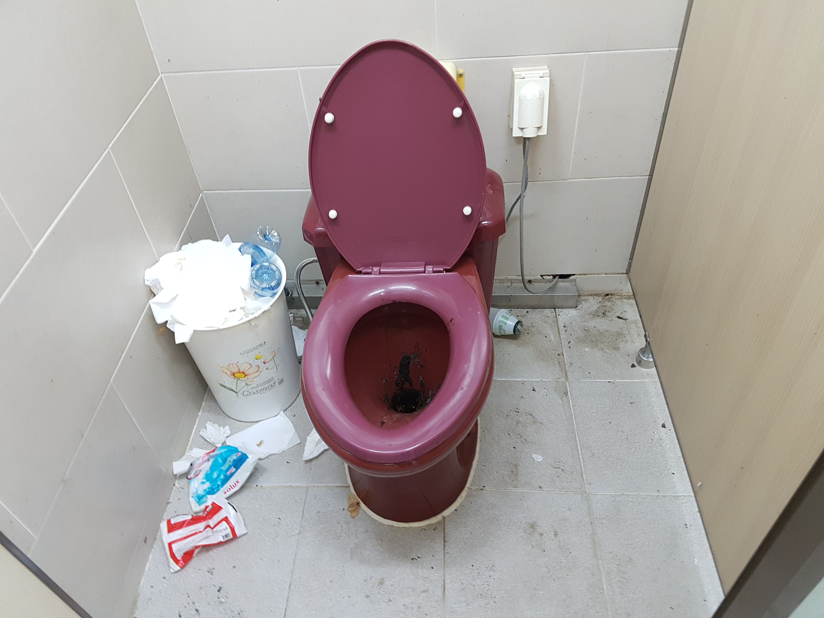 그러나 차마 눈 뜨고 볼수 없는 간이 화장실이며, 물을 수동으로 부어야 하는 열악한 환경에서 아이들이 마음놓고 화장실을 이용할 수 없어서, 소변은 주변의 풀숲에 보고 있습니다.