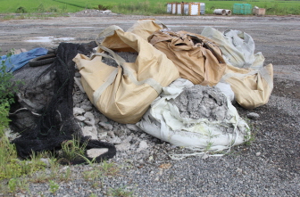 공사장 곳곳에는 폐 콘크리트 잔재물 불법 보관 한 후 레미콘 타설 후 잔재물 현장에 버린 후 관리 전혀 아니한현장 으로 드러나