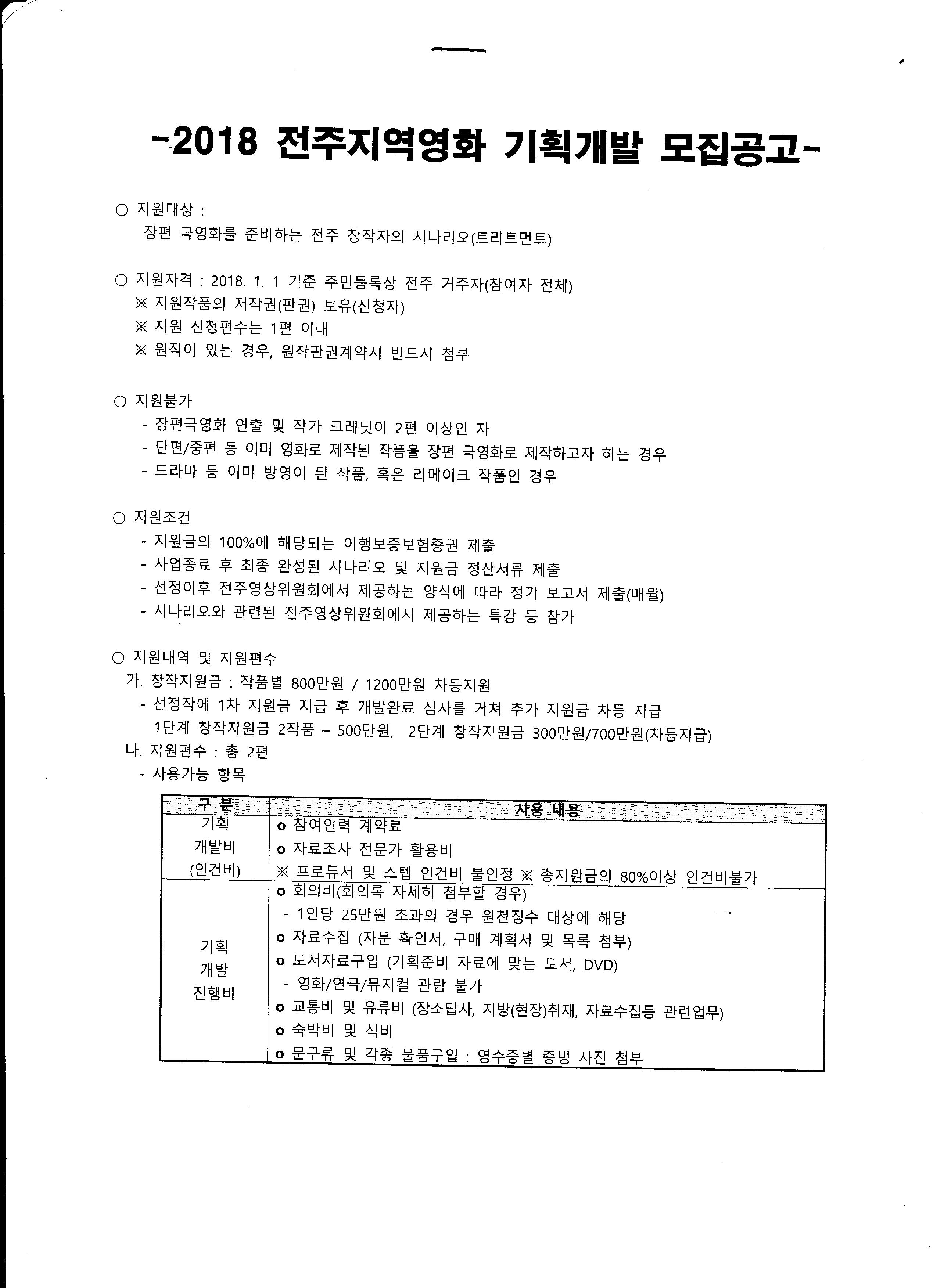 시에서 추구하는 형태 입니다. 군산시에서는 로케이션분야를 5천만원 책정하였는데 전주 연상위에서 1천만원
