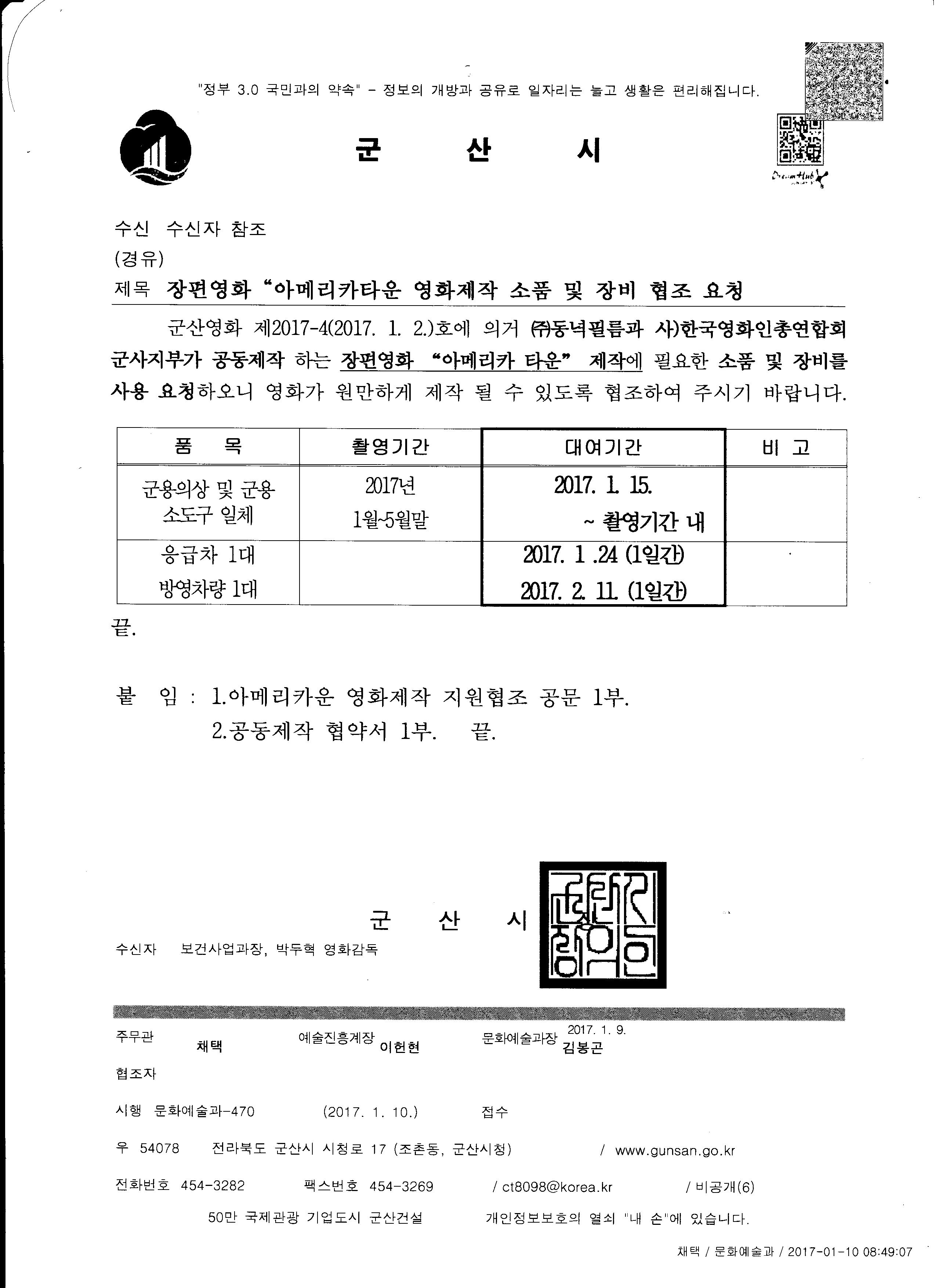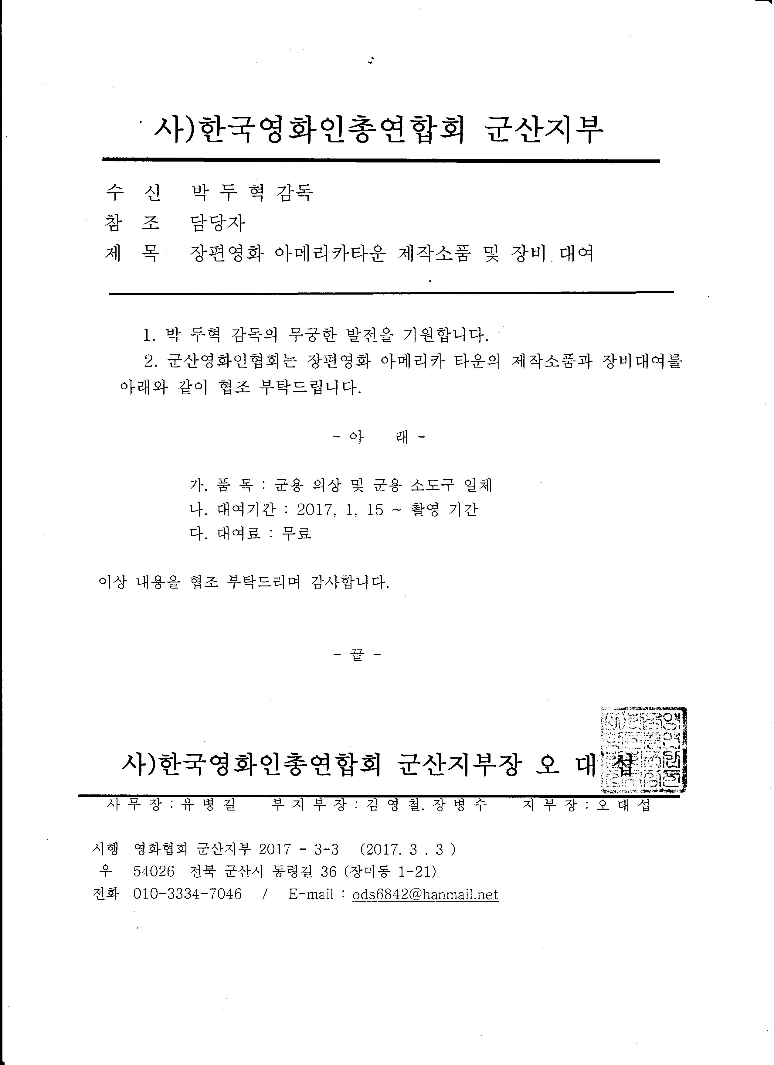 대여해 주었는데 정작 제작 예산이 필요하다고 요구하니 들어 주질 않고 말로만 군산시 영화육성이라 하고 엉뚱한