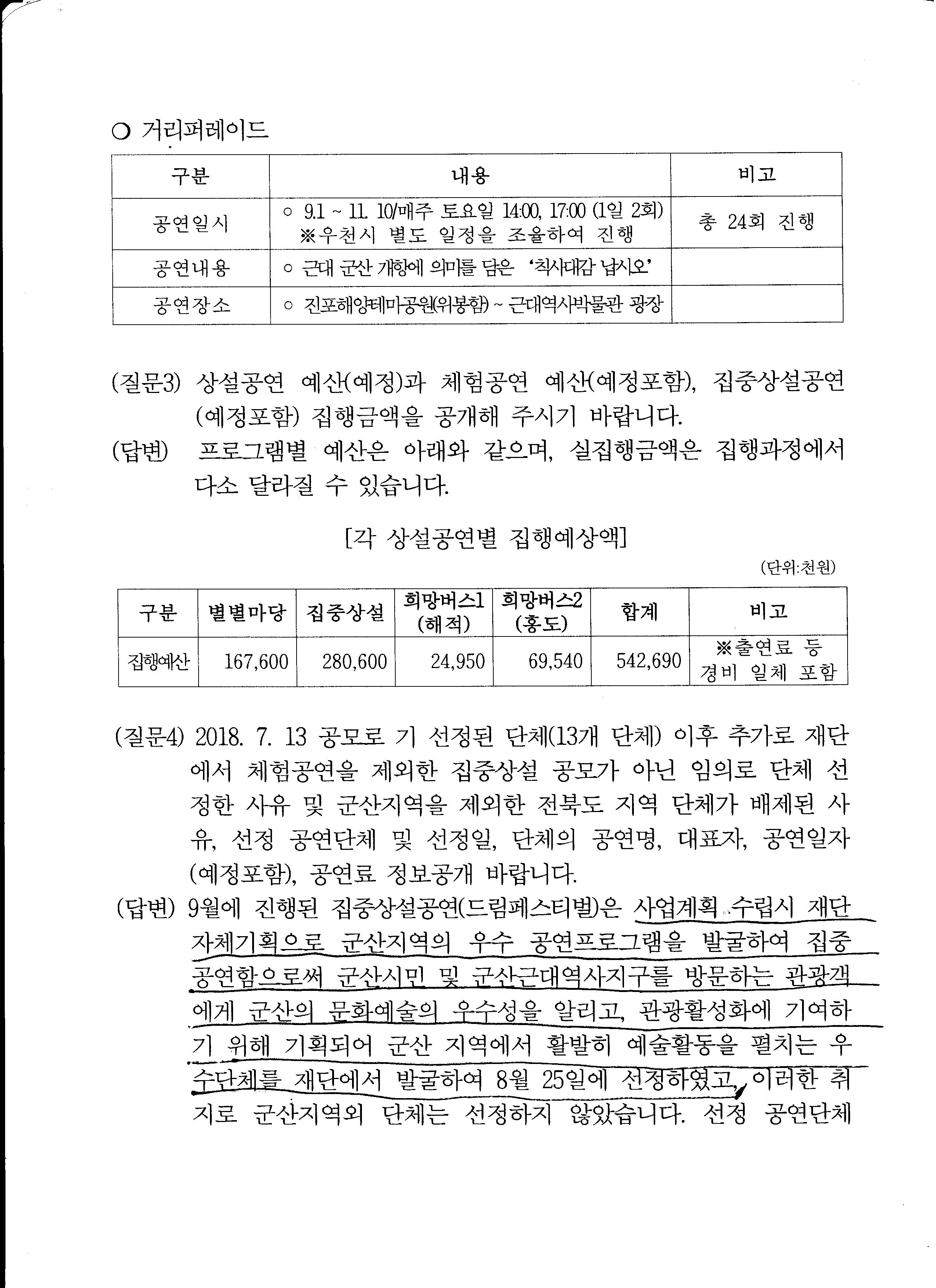 군산시 문화예술과에서는 장소선정 이외 재단과 아무런 상의한적이 없다고 합니다.