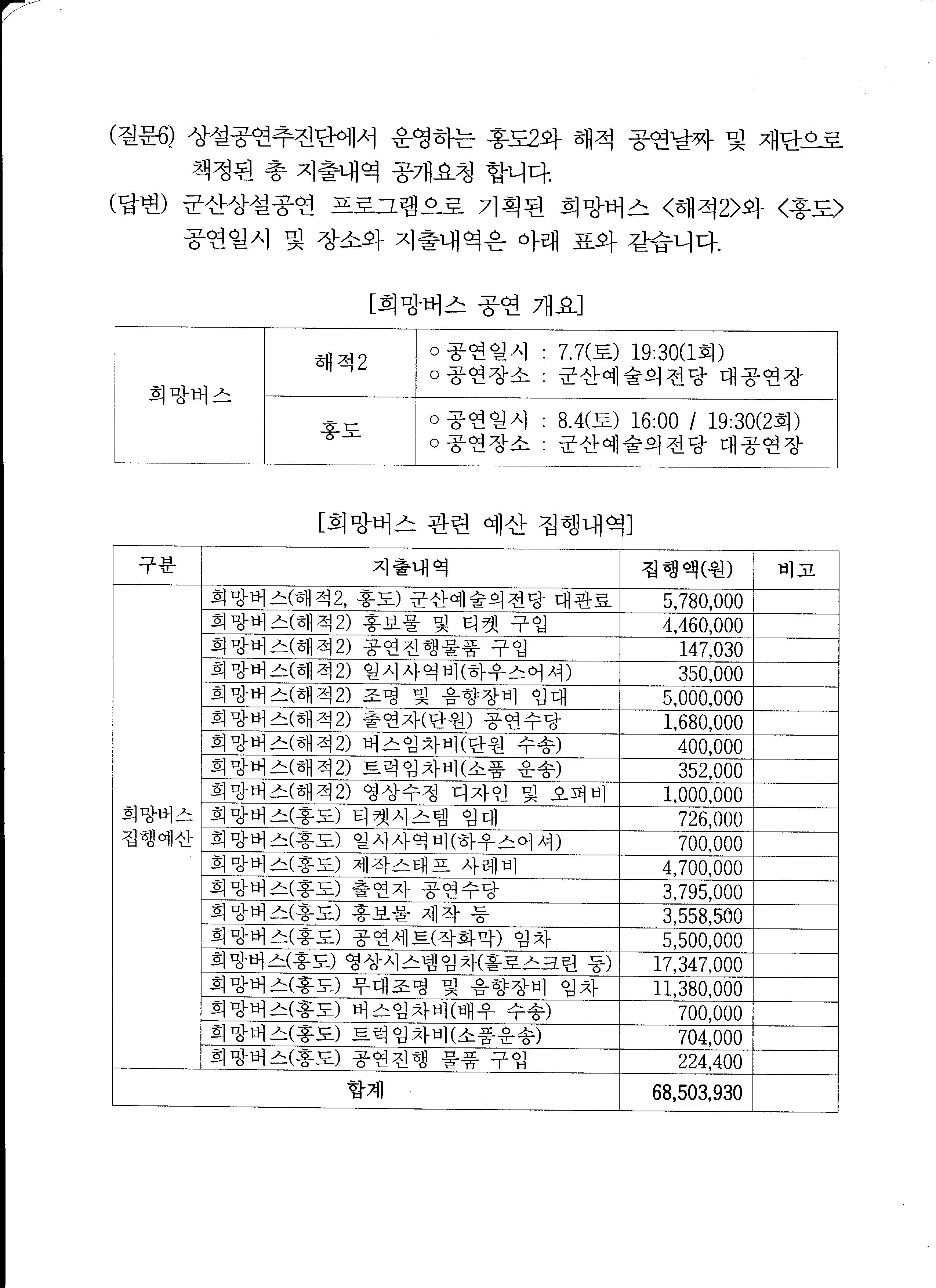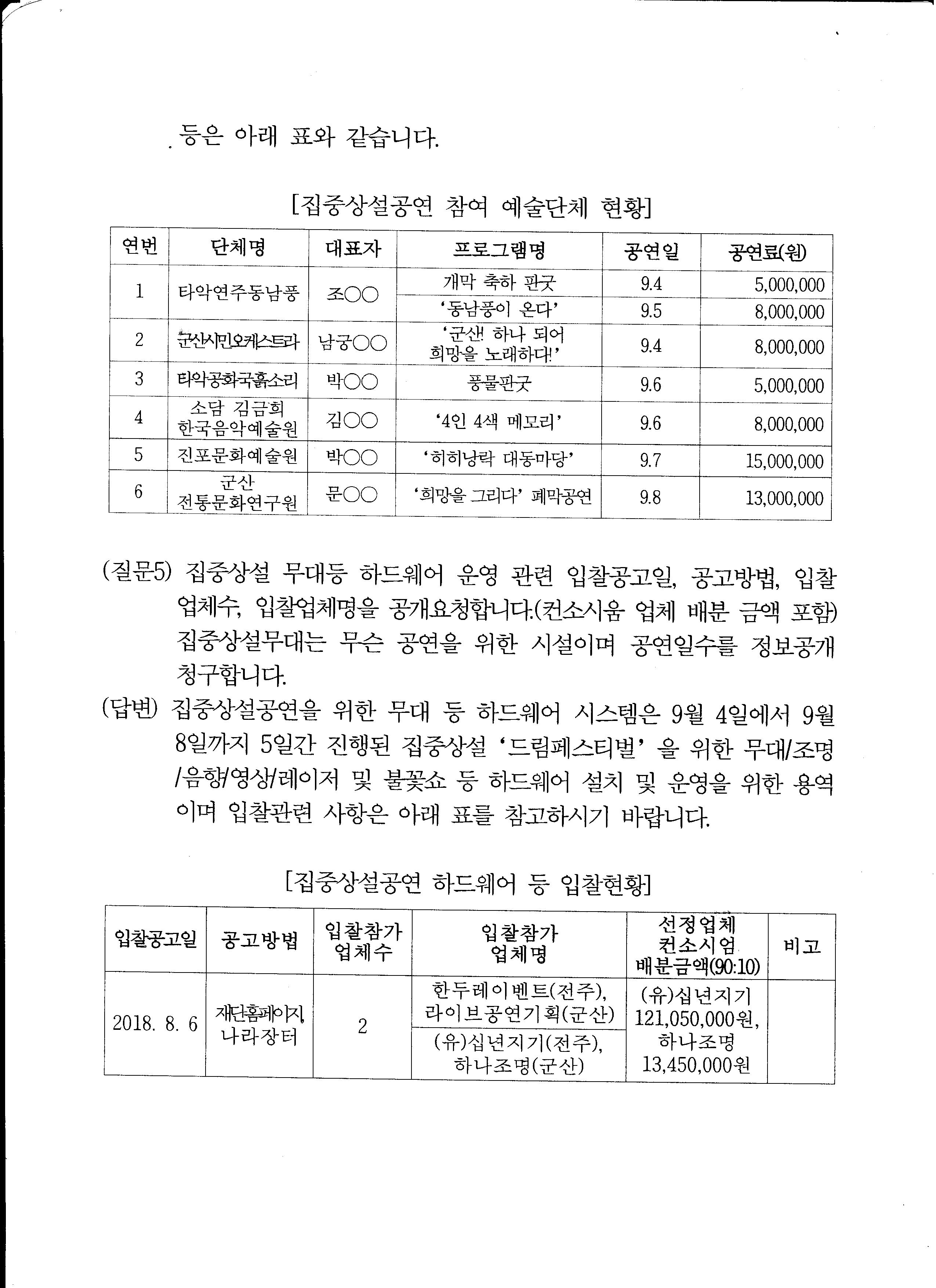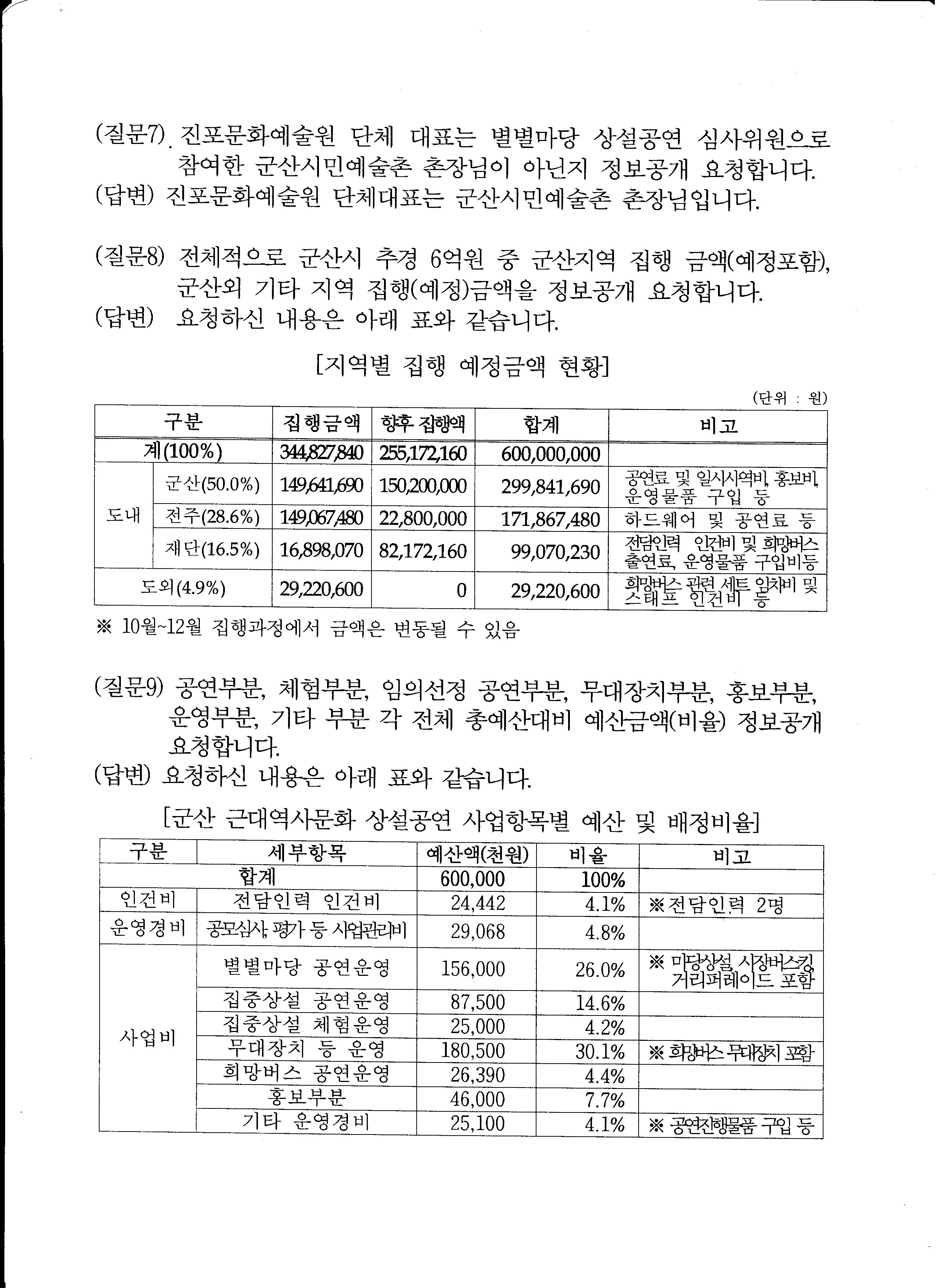 군산시 추경을 군산시와 상의하여 전북문화관광재단에서 임의대로 아는 우수 단체만 선정 배분하여 8월부터10월 말까지 추경 6억원을 집행 하였다고 합니다.