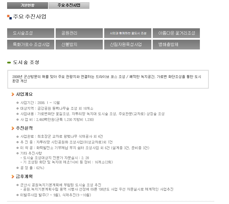 2. 군산시 홈페이지 행정정보, 생활정보의 업데이트가 필요합니다.