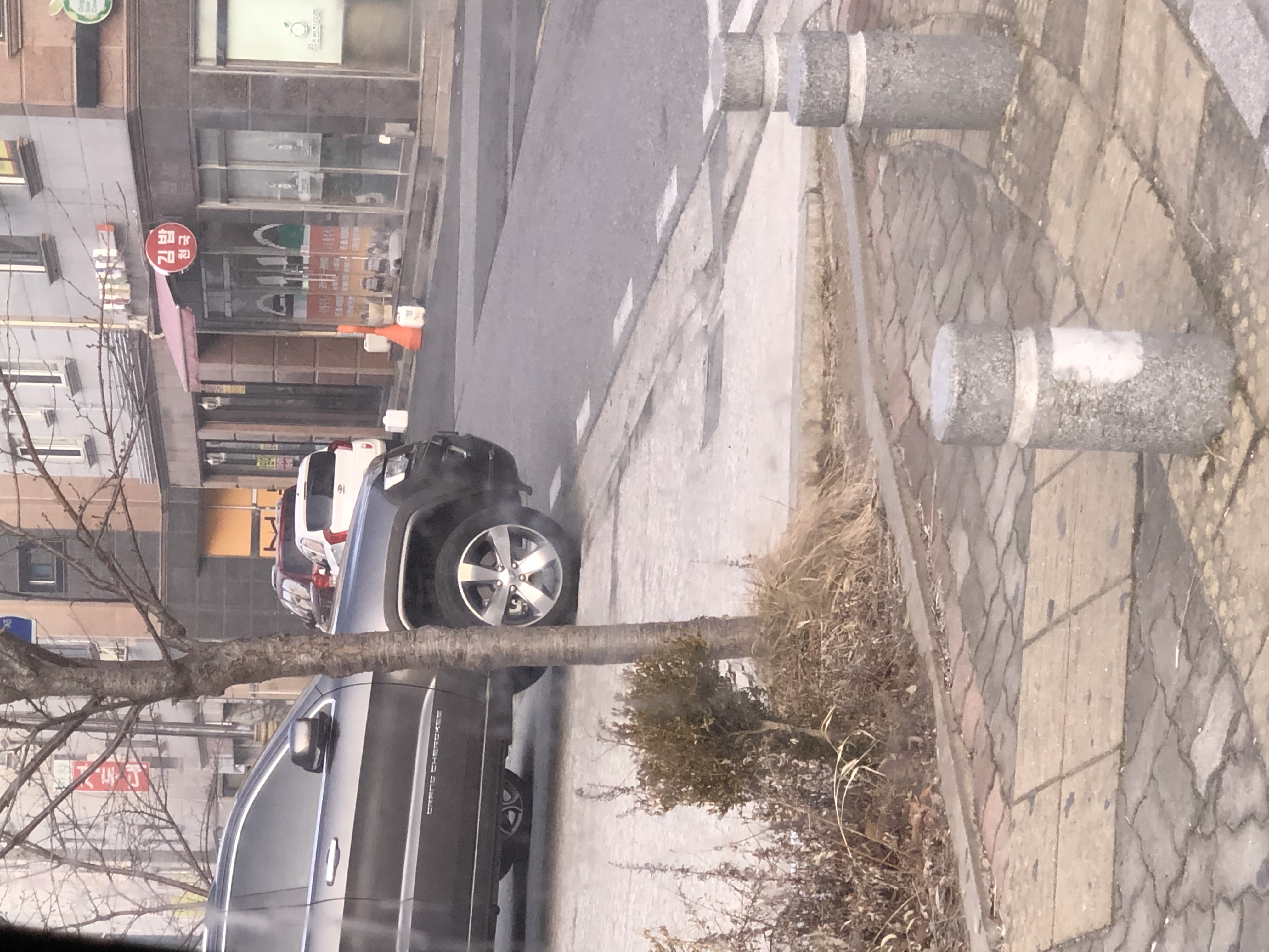 건물에 주차를 한 거니 뭐라할 순 없는데 늘 도로까지 침범해서 주차를 합니다