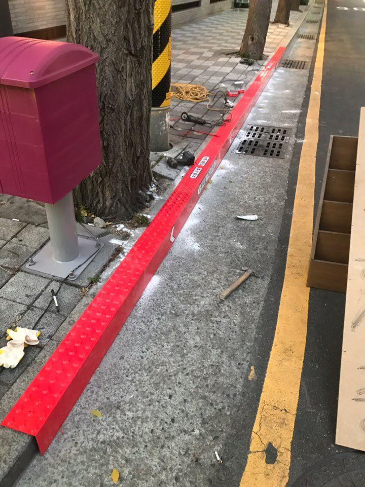 반면에 출장 길에 부산역 앞에 설치된 블록형 수지연석커버를 보았는데 색깔도 예쁘고 친환경적으로 보여서 좋았습니다