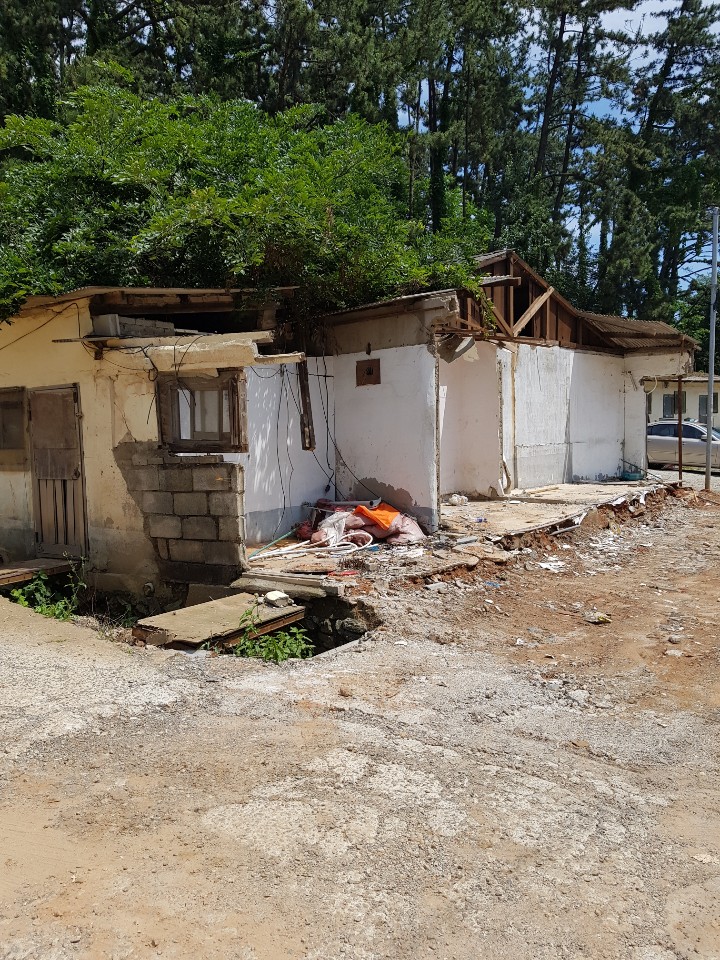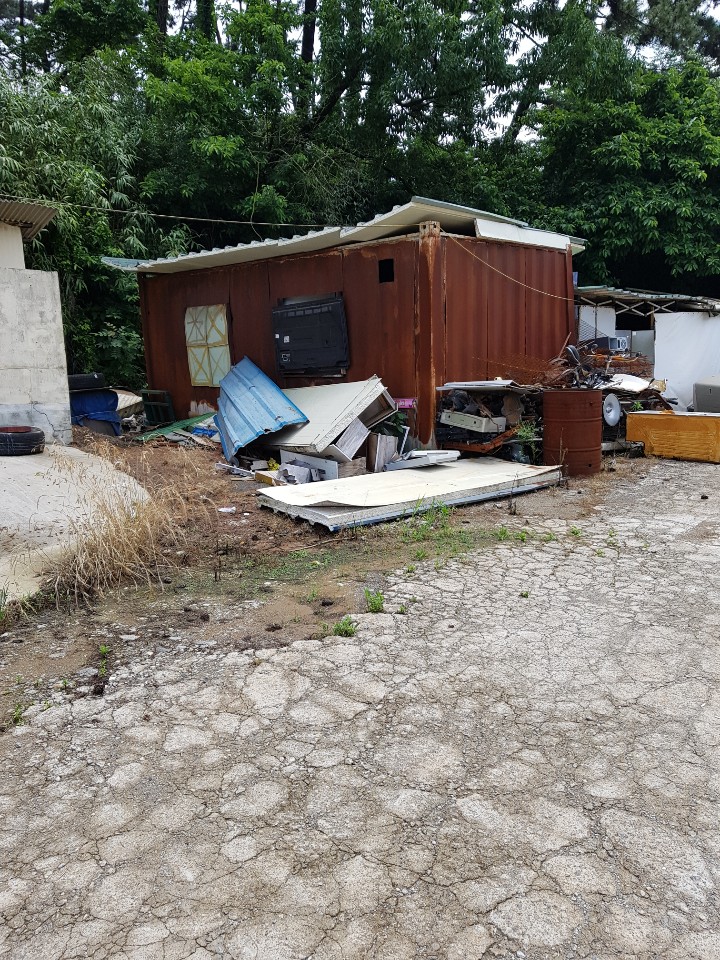 건축물로서 미관상 보기에도 흉물스럽고 당장 건축물자체가 무너질것 같이 보입니다 최근에는 방치된 콘테이너박스에서 화재가 발생한 지역 입니다 전류가 흐르는 철재전봇대시설 아주
