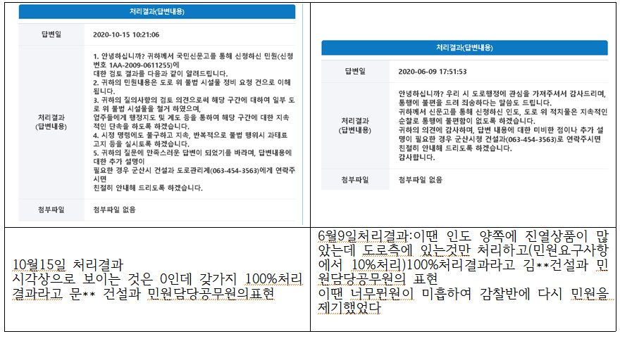 놀라운 것은 민원처리를 전혀하지 안했는데,현장방문 흔적도 없는데 마치 충실하게 민원처리했다는