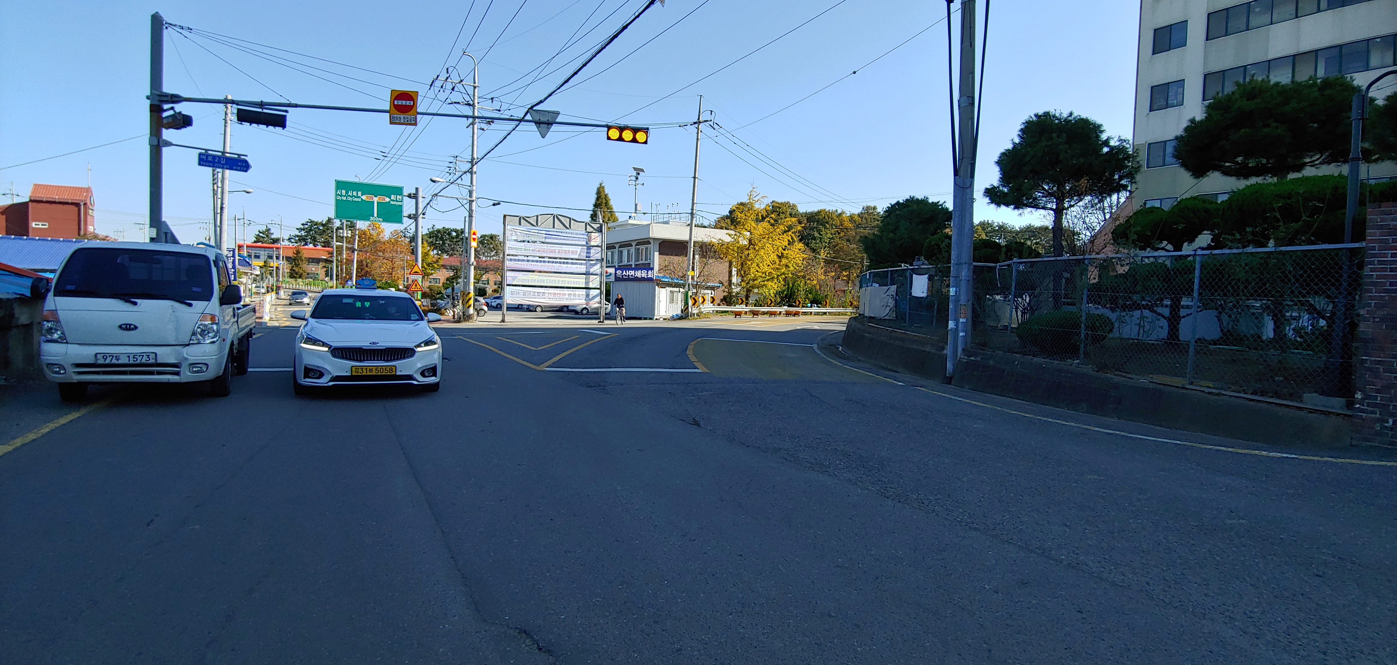 도로는 좁은데 아파트 앞을 지나가는 차량들은 상당히 많아집니다.
