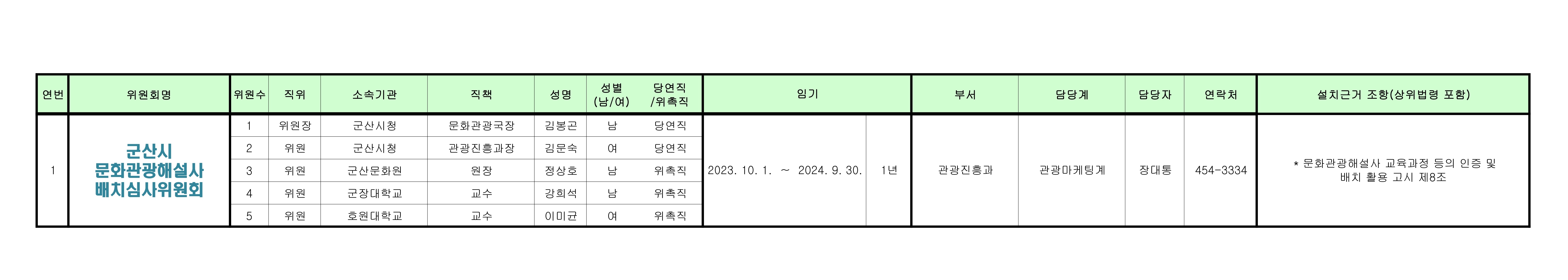 | 140 | 군산시 문화관광해설사 배치심사위원회 위원 명단 |