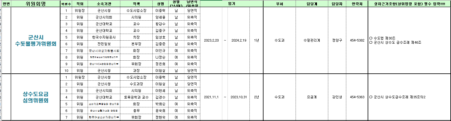 | 117 | 군산시 수도과 소관 위원회 현황 |