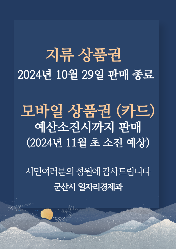 | 153 | 2024년 군산사랑상품권(지류) 소진!!! |