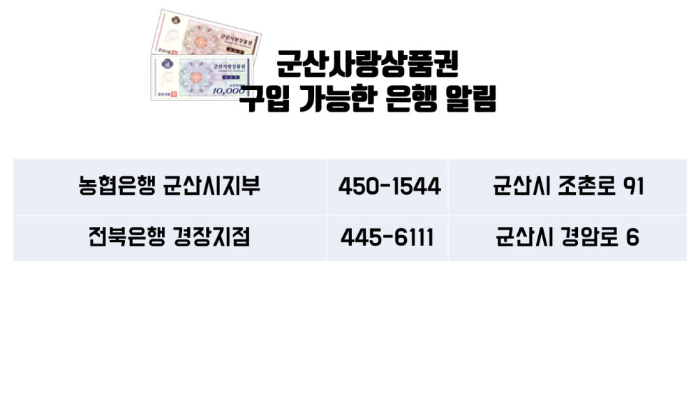 | NOTICE | 군산사랑상품권 유효기간은 5년입니다! |