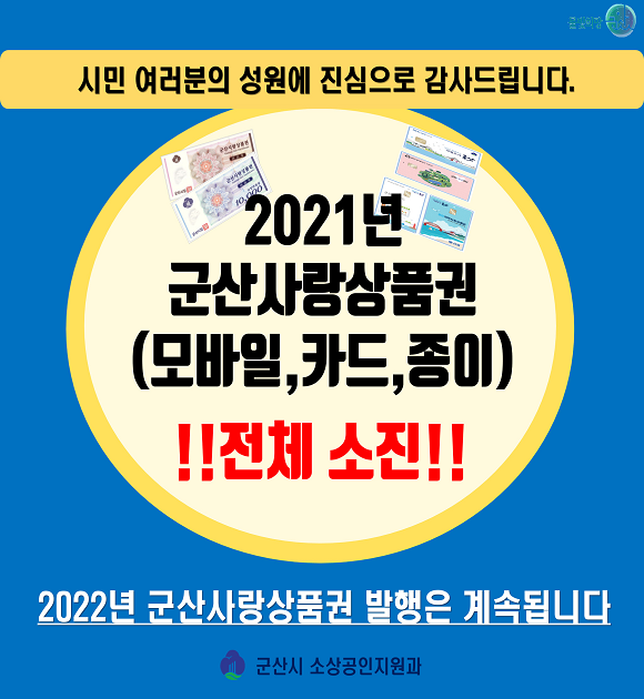 | 103 | 2021년 군산사랑상품권 종이류/모바일 전액 소진!! |
