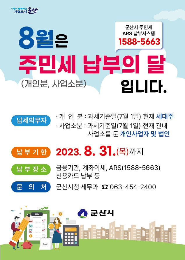 | 1199 | 2023년 8월 주민세(개인분) 납부안내 |